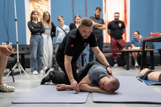 На курсе изучаются возможные причины остановки кровообращения и отсутствия сознания. Проходят тренировки по правильному выполнению компрессий грудной клетки и искусственного дыхания, безопасному использованию автоматического наружного дефибриллятора.
